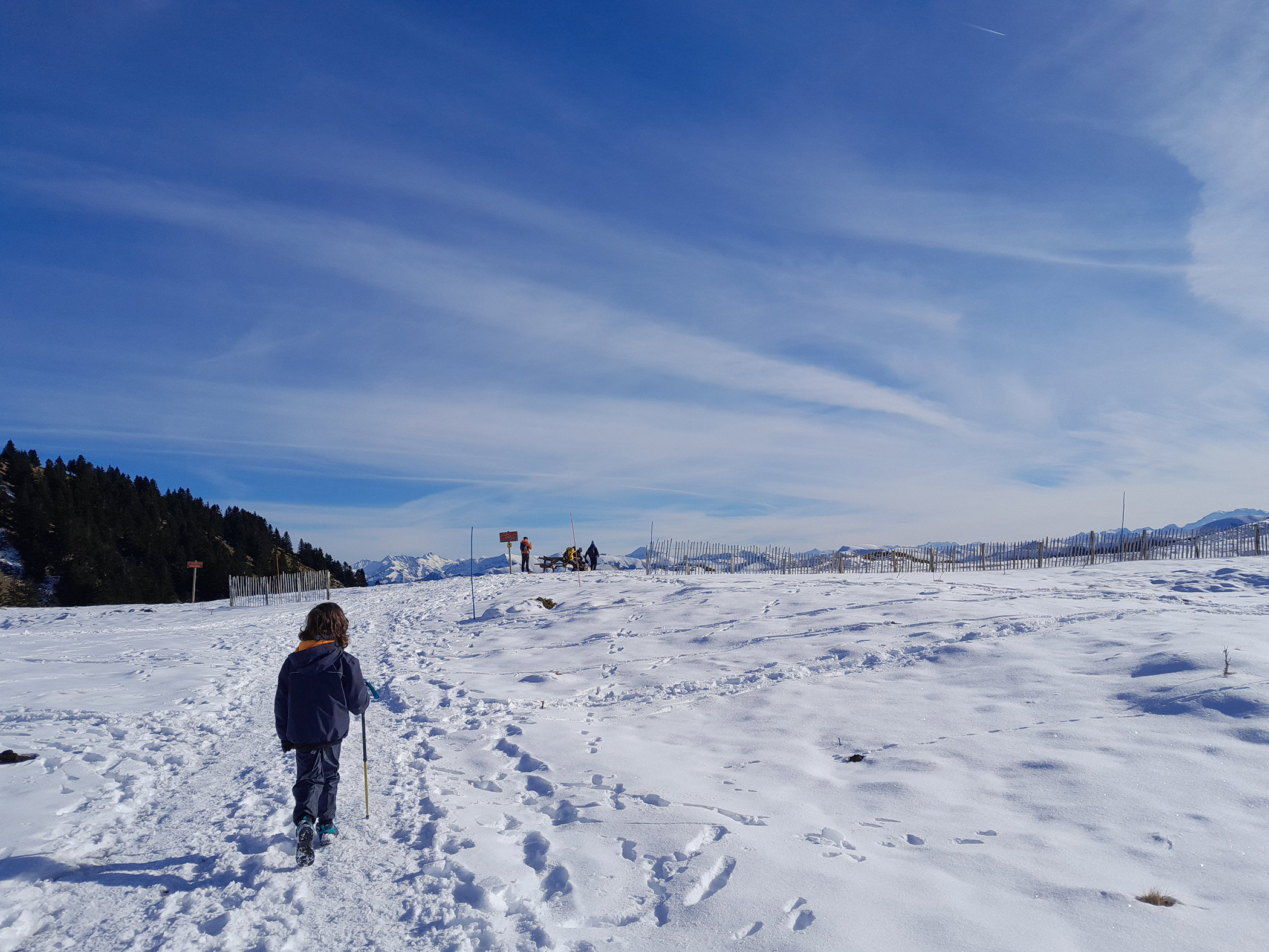 L’après-midi, place à une balade au grand air ! Aujourd’hui, notre sortie se fait en chaussures mais selon l’enneigement, il est possible de louer de raquettes ou des fatbikes pour les familles avec de grands enfants : l’essentiel est de marcher à son rythme et de profiter de l’instant.